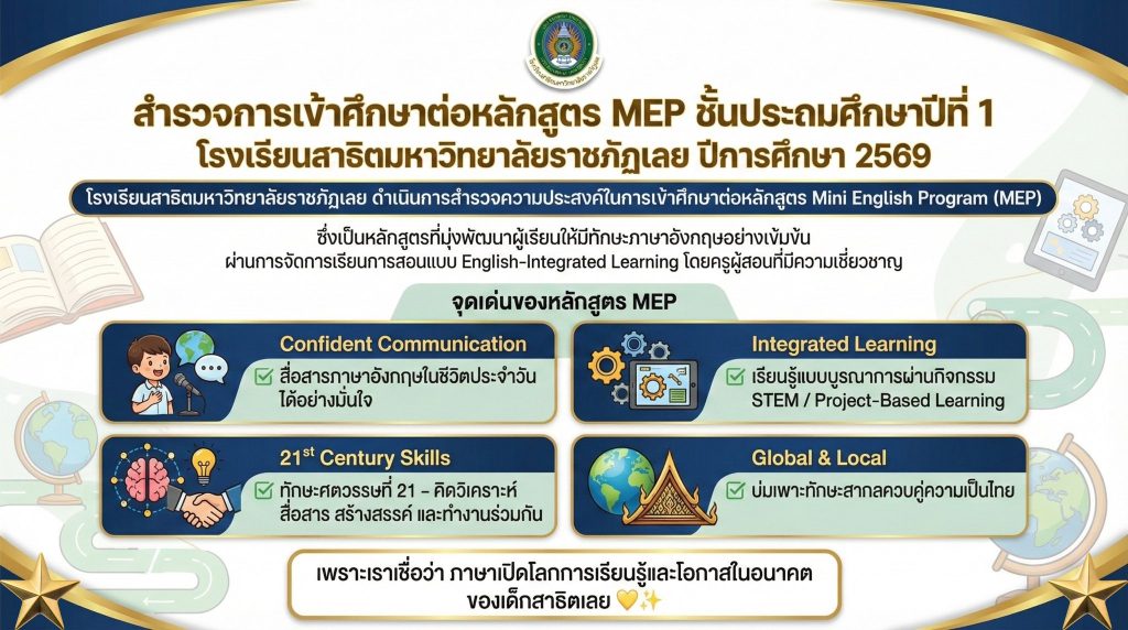 ไม่มีหมวดหมู่ แบบสอบถามเรื่องการศึกษาต่อ โรงเรียนสาธิตมาหาวิทยาลัยราชภัฏเลย หลักสูตรใหม่ MEP 01/12/2025 teerayut thairat