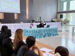 นางสาวสุธาสินี ธนัฐนุตินันท์ ผู้อำนวยการโรงเรียนสาธิตมหาวิทยาลัยราชภัฏเลย ประชุมครูและบุคลากร ในการขับเคลื่อนทิศทางพัฒนาโรงเรียน
