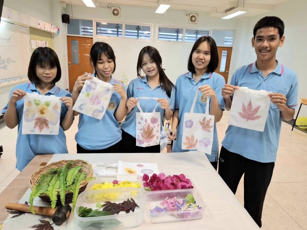 เปลี่ยนธรรมชาติให้เป็นงานศิลป์รายวิชา การงานอาชีพ ชั้นมัธยมศึกษาปีที่ 5 วันนี้นักเรียนได้สร้างสรรค์ผลงาน Eco Printing – ผ้าพิมพ์สีธรรมชาติ