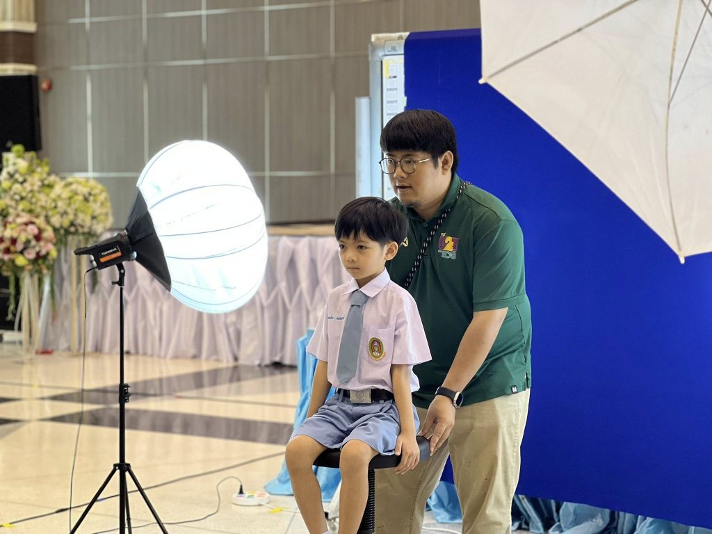 กิจกรรมการถ่ายภาพทำบัตรนักเรียนประจำปีการศึกษา 2568 ได้จัดขึ้นเมื่อวันจันทร์ที่ ๑๗ พฤศจิกายน พ.ศ. ๒๕๖๘ ณ หอประชุมโรงเรียนสาธิตมหาวิทยาลัยราชภัฏเลย โดยมีนักเรียนเข้ารับการถ่ายภาพอย่างพร้อมเพรียง ตั้งแต่ระดับชั้น ประถมศึกษาปีที่ ๑ ไปจนถึงมัธยมศึกษาปีที่ ๖ การดำเนินการถ่ายภาพในครั้งนี้เป็นไปด้วยความเป็นมืออาชีพและราบรื่นอย่างยิ่ง เนื่องจากทีมงานนักศึกษาจากสาขาดิจิทัลอาร์ต ซึ่งมีความเชี่ยวชาญด้านการถ่ายภาพ การจัดแสง และการจัดการภาพดิจิทัล ได้นำอุปกรณ์ที่ทันสมัยและทักษะเฉพาะทางมาใช้ในการเก็บภาพ ทำให้มั่นใจได้ว่าภาพถ่ายบัตรนักเรียนจะมีคุณภาพสูงและได้มาตรฐาน