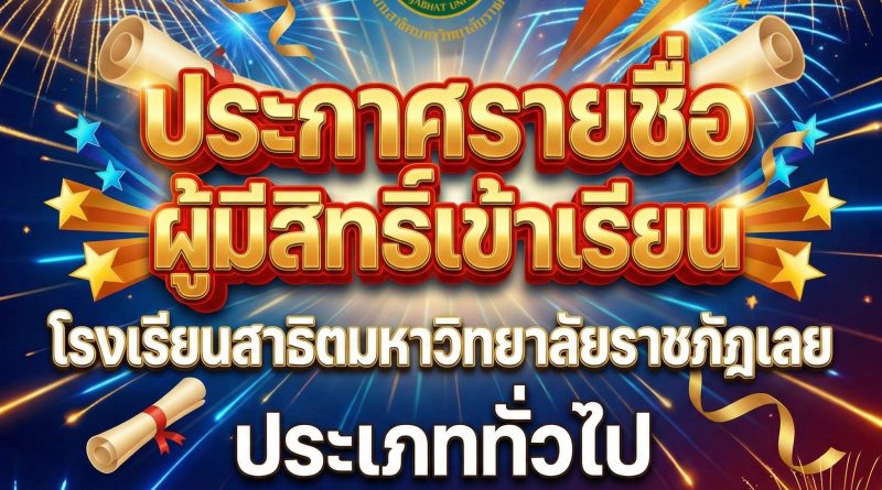ไม่มีหมวดหมู่ 03/02/2026 teerayut thairat ประกาศรายชื่อผู้มีสิทธิ์เข้าเรียน โรงเรียนสาธิตมหาวิทยาลัยราชภัฏเลย ประเภททั่วไป ประจำปีการศึกษา 2569 Read More
